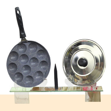 12 Cavity Nonstick Appam Patra with Lid + Stainless Steel Medu Wada Maker