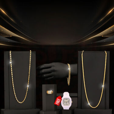 2 Golden Chain + Bracelet + Ring + Free Watch (2GCBRW16)