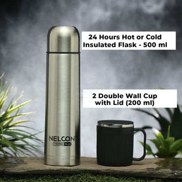 24 Hours Hot or Cold Insulated Flask (500 ml) + Double Wall Cup With Lid (1F1C2)
